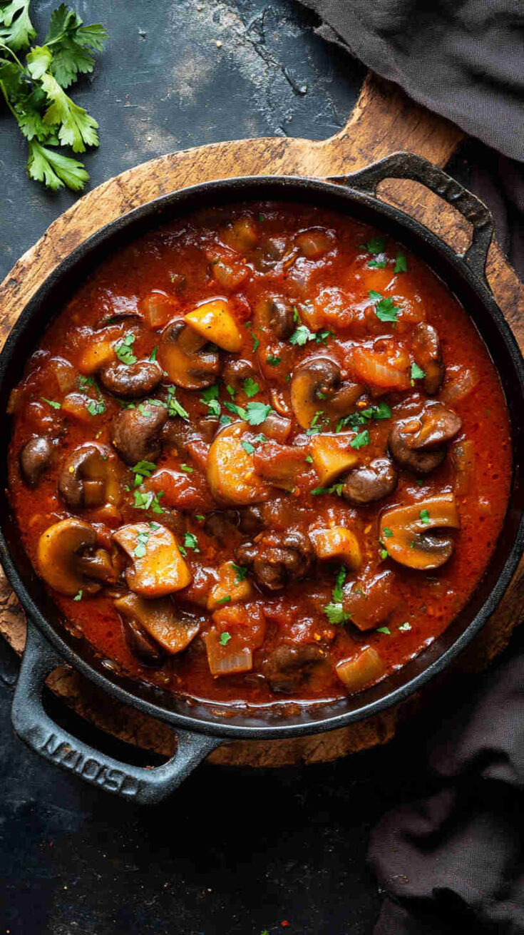 - Cook the mushrooms! Add sliced mushrooms to the pot and stir well. Simmer 10–12 minutes until mushrooms are tender and the sauce is rich and thickened.