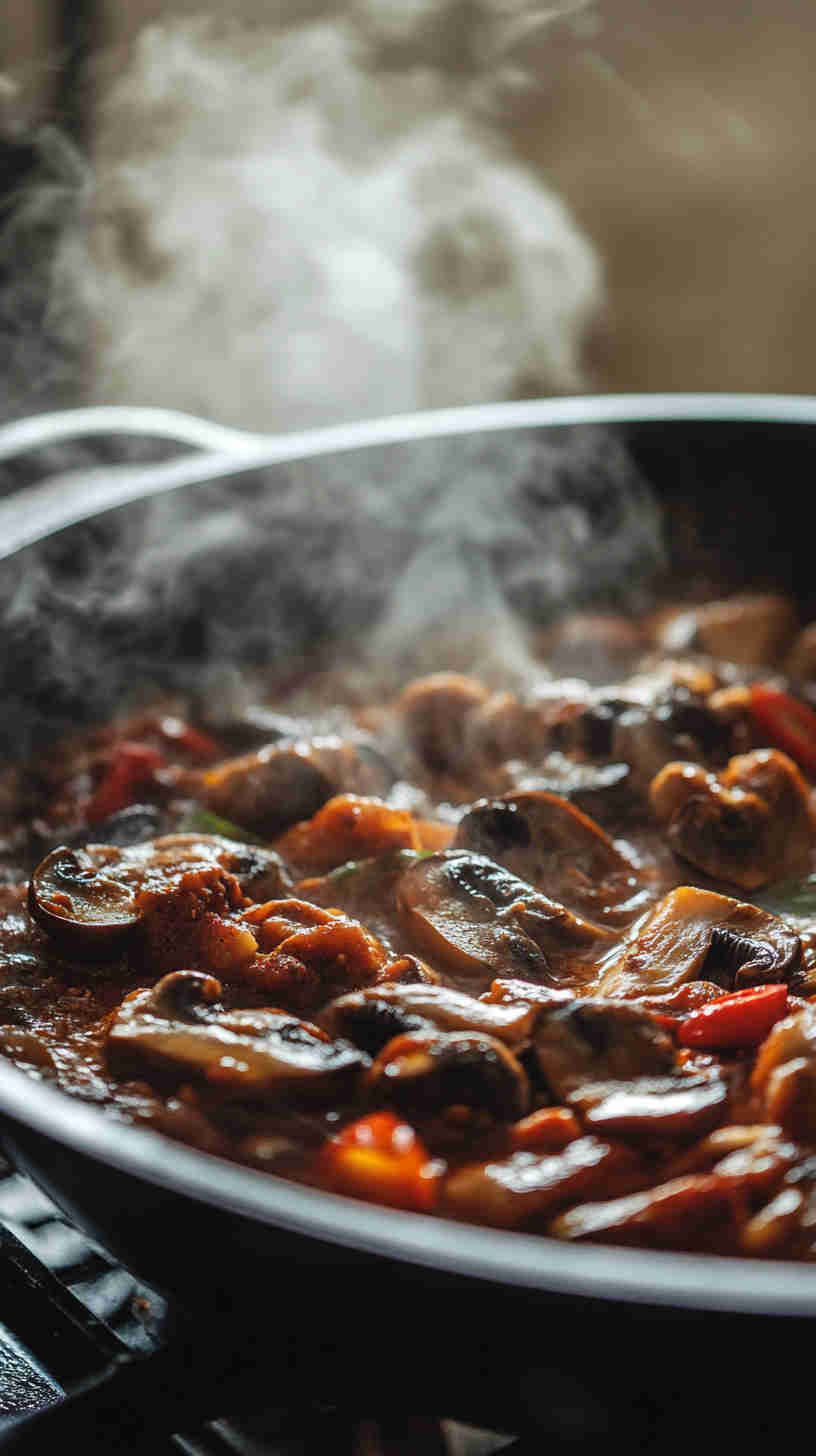 - Welcome the mushrooms to the party. Gently fold in the sliced mushrooms. They'll release their juices—let everything simmer together for 10-12 minutes, stirring now and then. The mushrooms will soak up all those bold spices and become tender yet meaty.
