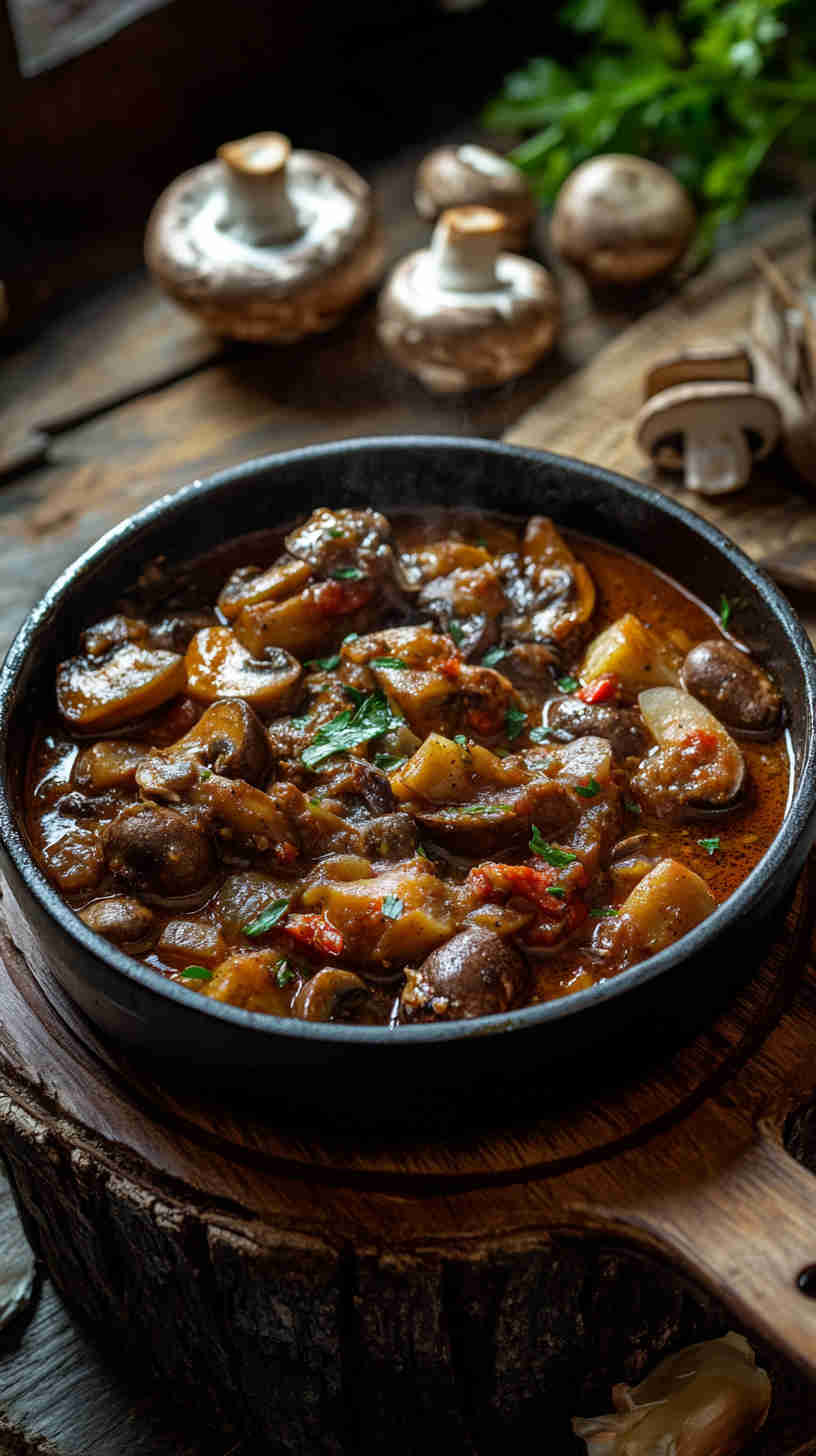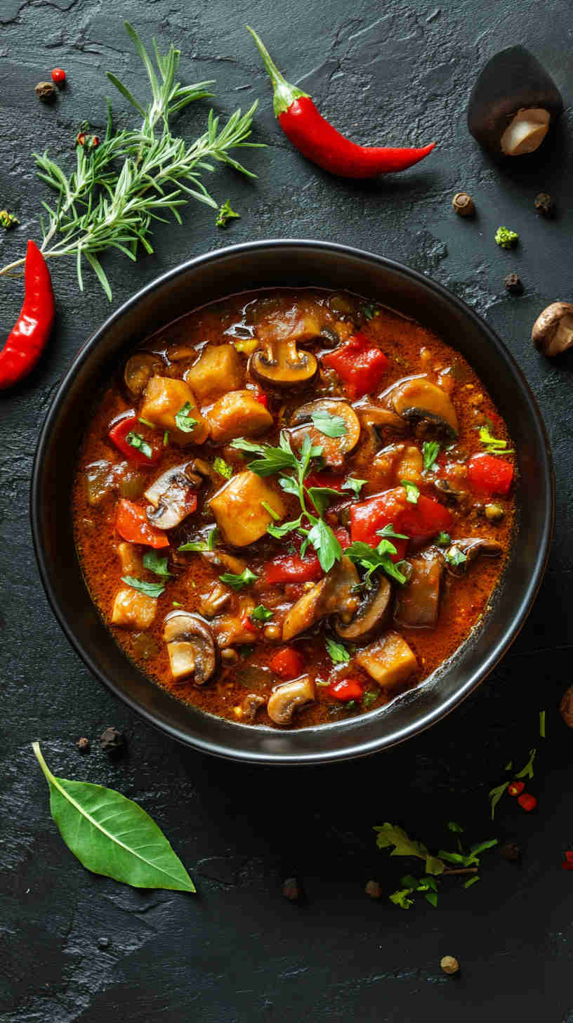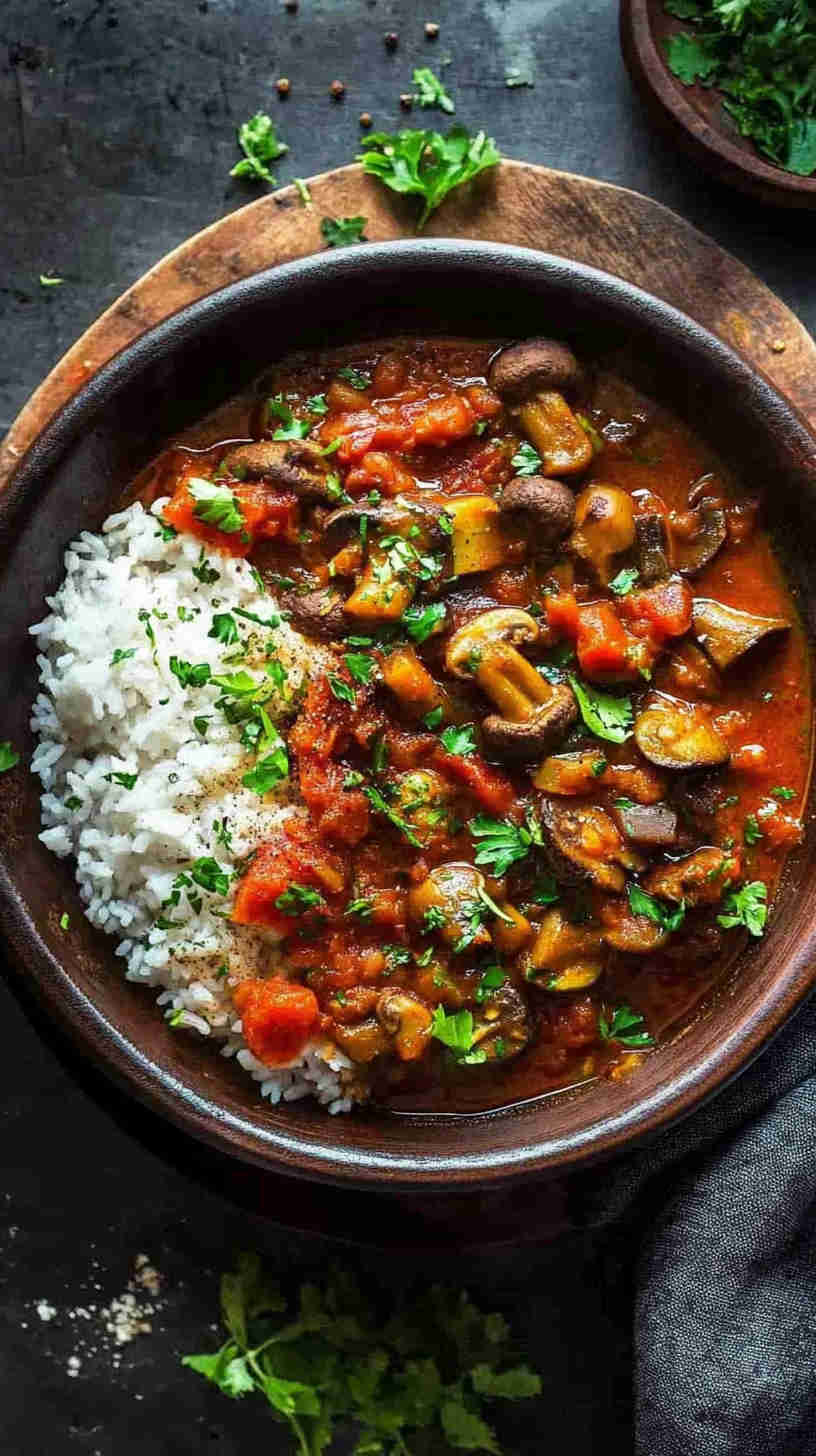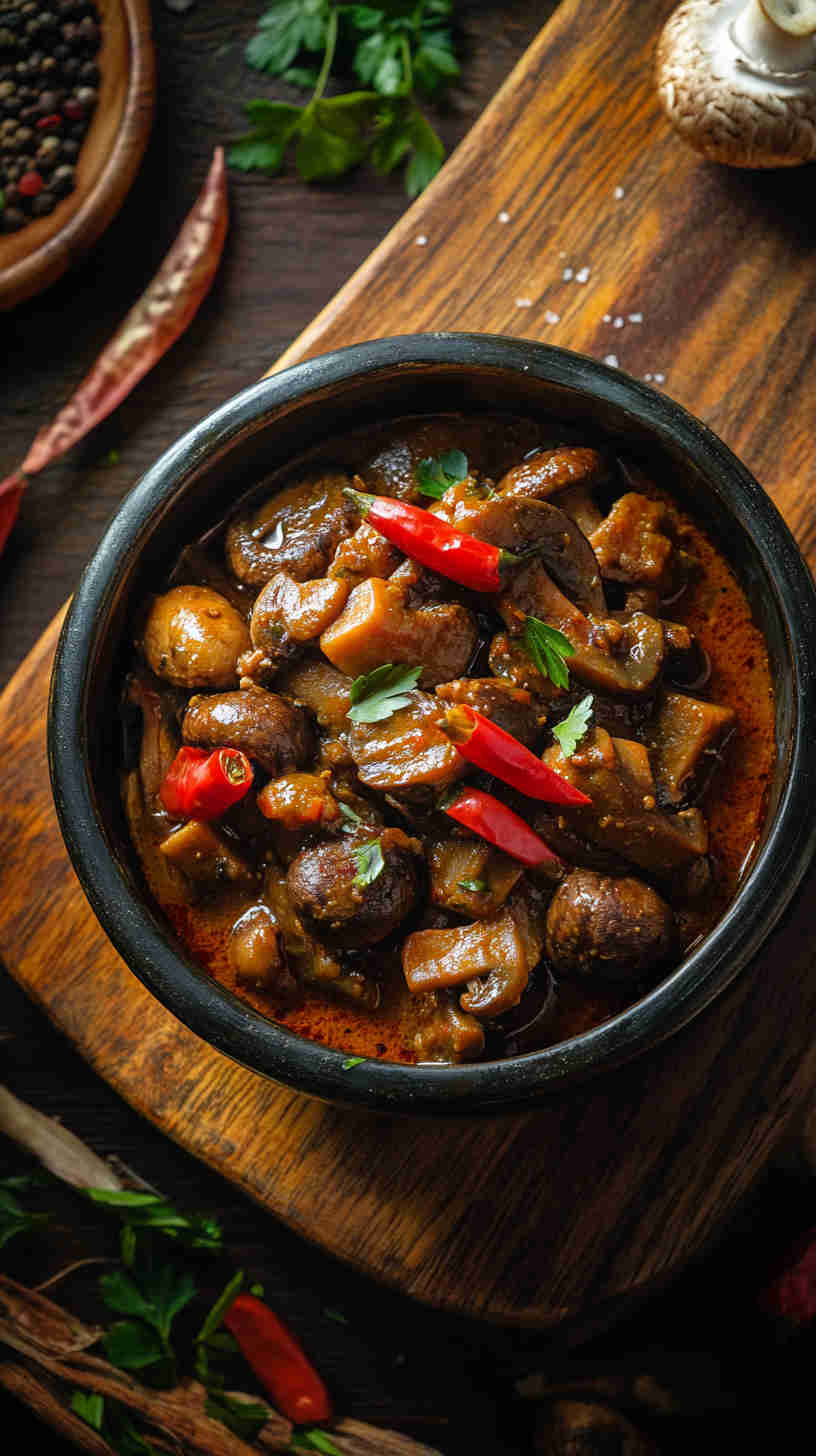 Fresh mushrooms are the star here—opt for firm, earthy types like cremini or oyster for the best meaty bite, as they hold up well in the stew without becoming mushy. Tomatoes provide the tangy base; use ripe, fresh ones (or canned plum tomatoes in a pinch) for natural sweetness and acidity that balances the spice.
