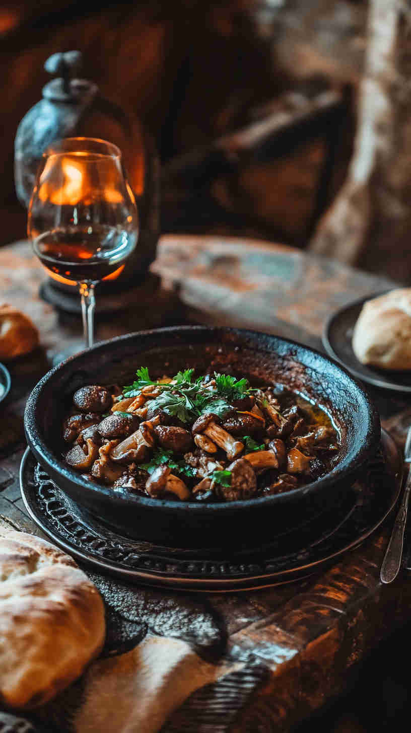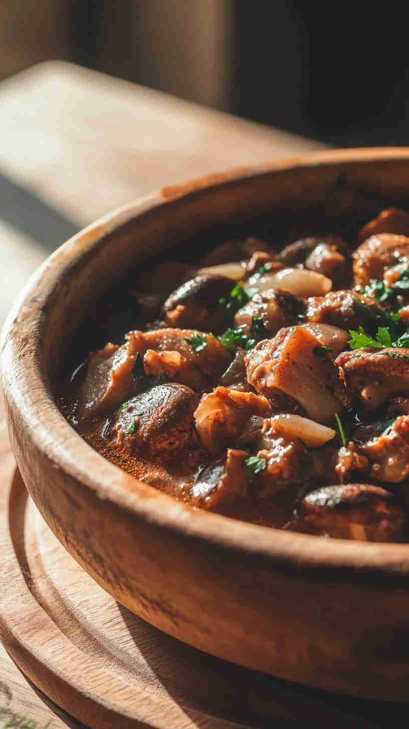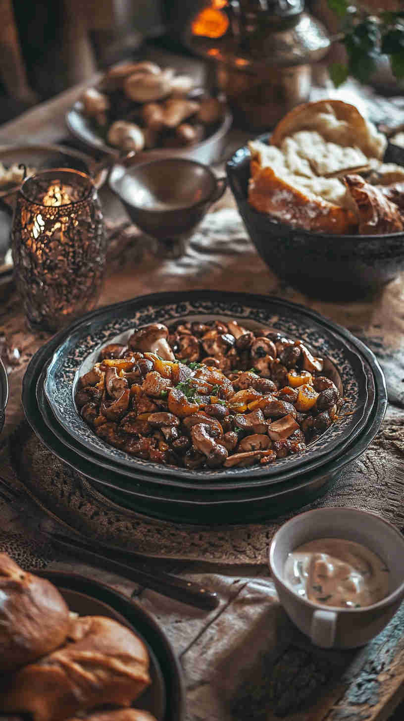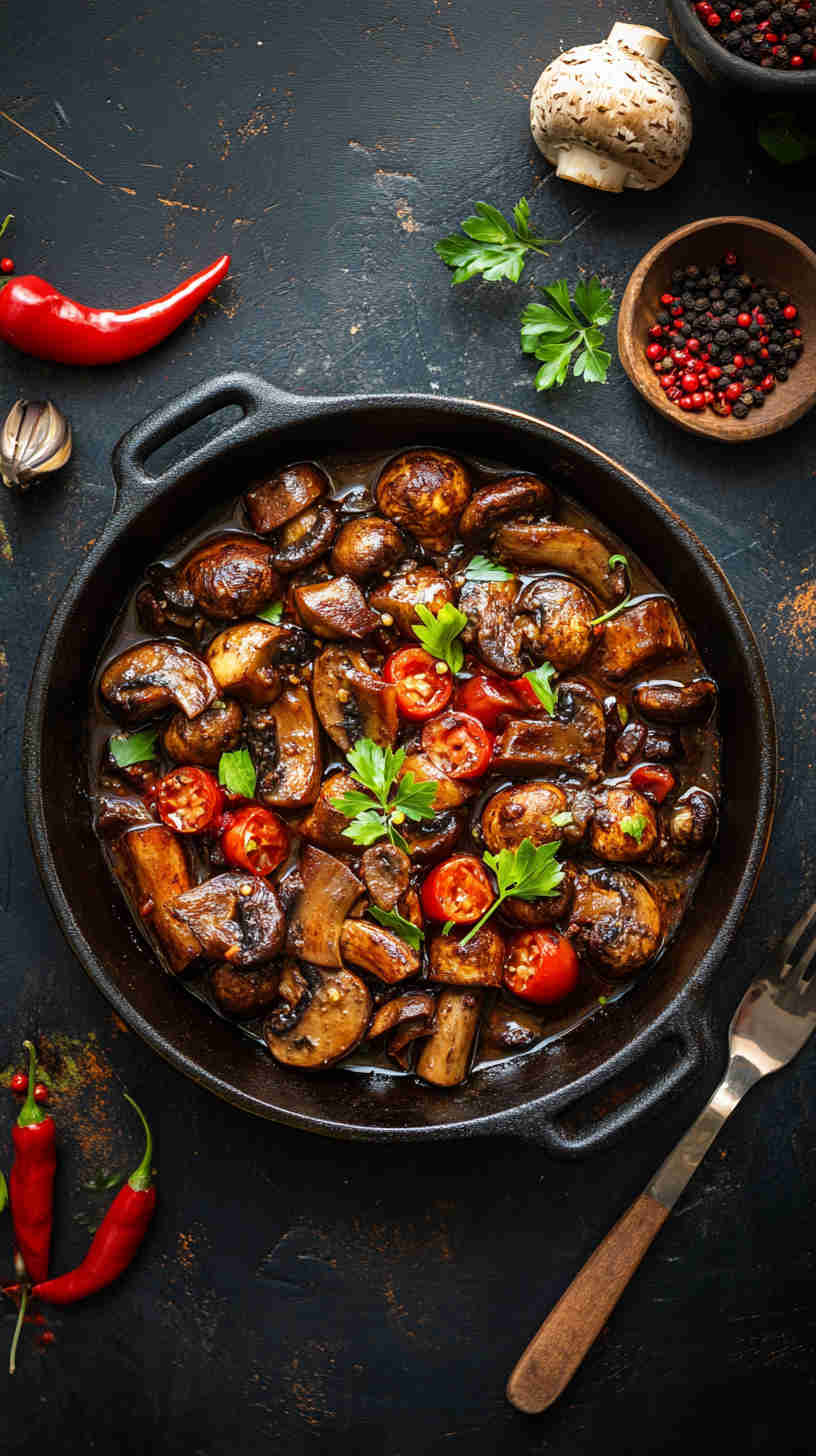 This creative twist on Libya’s iconic Bazeen transforms the traditional barley dough and rich tomato stew into a hearty vegetarian delight. Earthy mushrooms replace meat in a spiced sauce with potatoes, eggs, and aromatic North African flavors, creating a comforting, communal dish perfect for sharing that celebrates African-inspired mushroom cuisine.