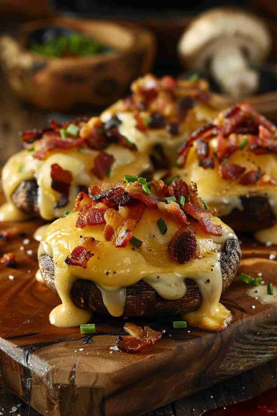 Crispy bacon, cheddar, sour cream, and chives stuffed into juicy mushrooms – all the loaded potato glory, zero carbs!