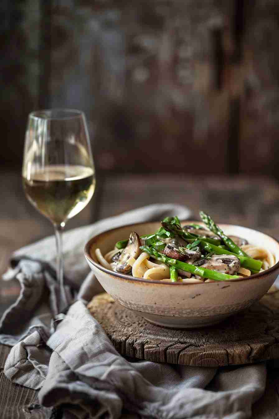 This is the dish you’ll make the second the first bunch of local asparagus appears at the market. The mushrooms are nutty and golden, the asparagus is perfectly crisp-tender with bright green pop, the sauce is light yet buttery with a whisper of lemon that makes everything taste like sunshine, and the bronze-die fusilli grabs every drop. It’s on the table in 22 real minutes, vegetarian, easily vegan, and tastes like something from a countryside trattoria in Tuscany. One forkful and you’ll be closing your eyes and smiling.