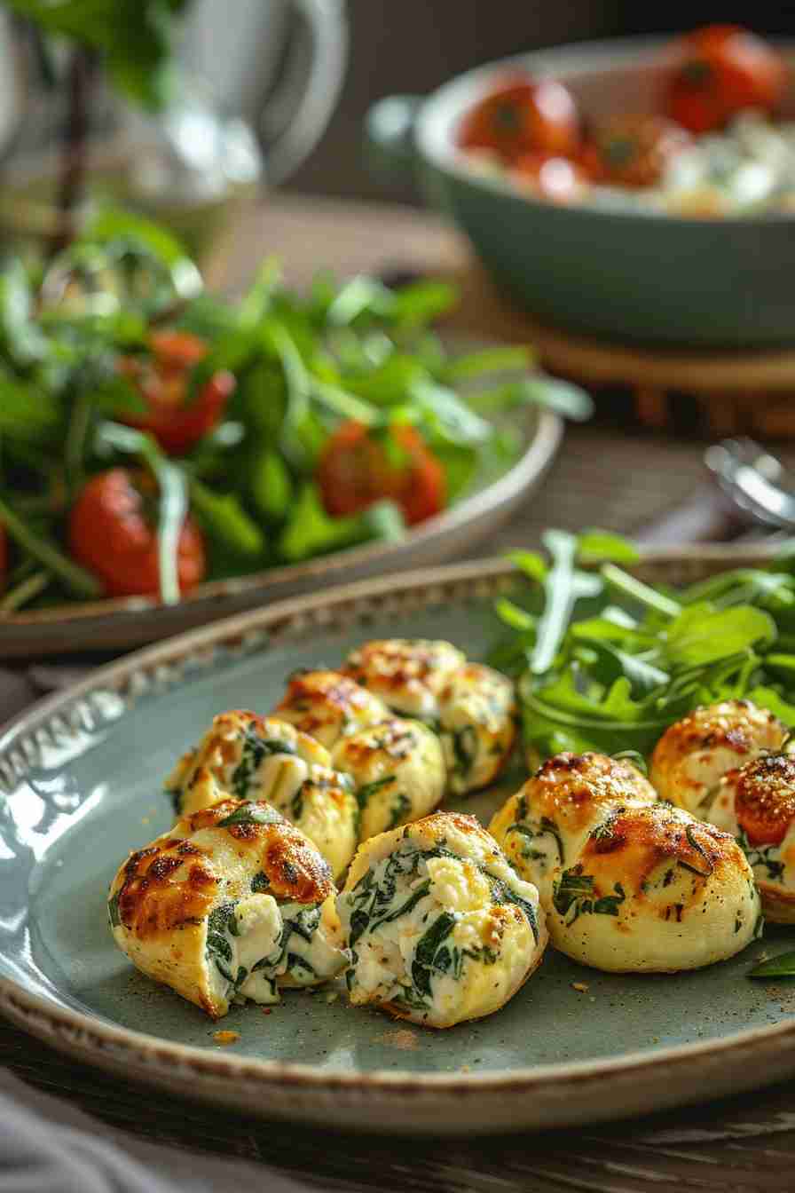 These restaurant-style stuffed mushrooms are generously filled with a silky mixture of whole-milk ricotta, garlicky sautéed spinach, nutmeg, lemon zest, and Parmesan, then crowned with melted mozzarella. Baked until bubbly and golden, they deliver the exact flavors of spinach-ricotta ravioli or lasagna in a naturally low-carb, gluten-free package.