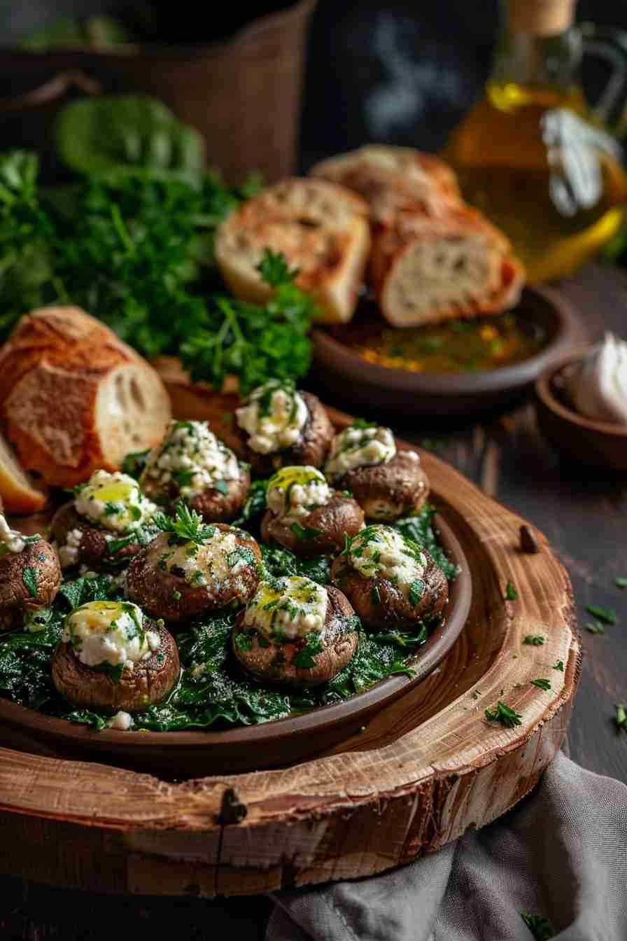 Classic Italian spinach-ricotta stuffed mushrooms with garlic, Parmesan, and golden mozzarella crust – creamy, elegant, and always devoured!