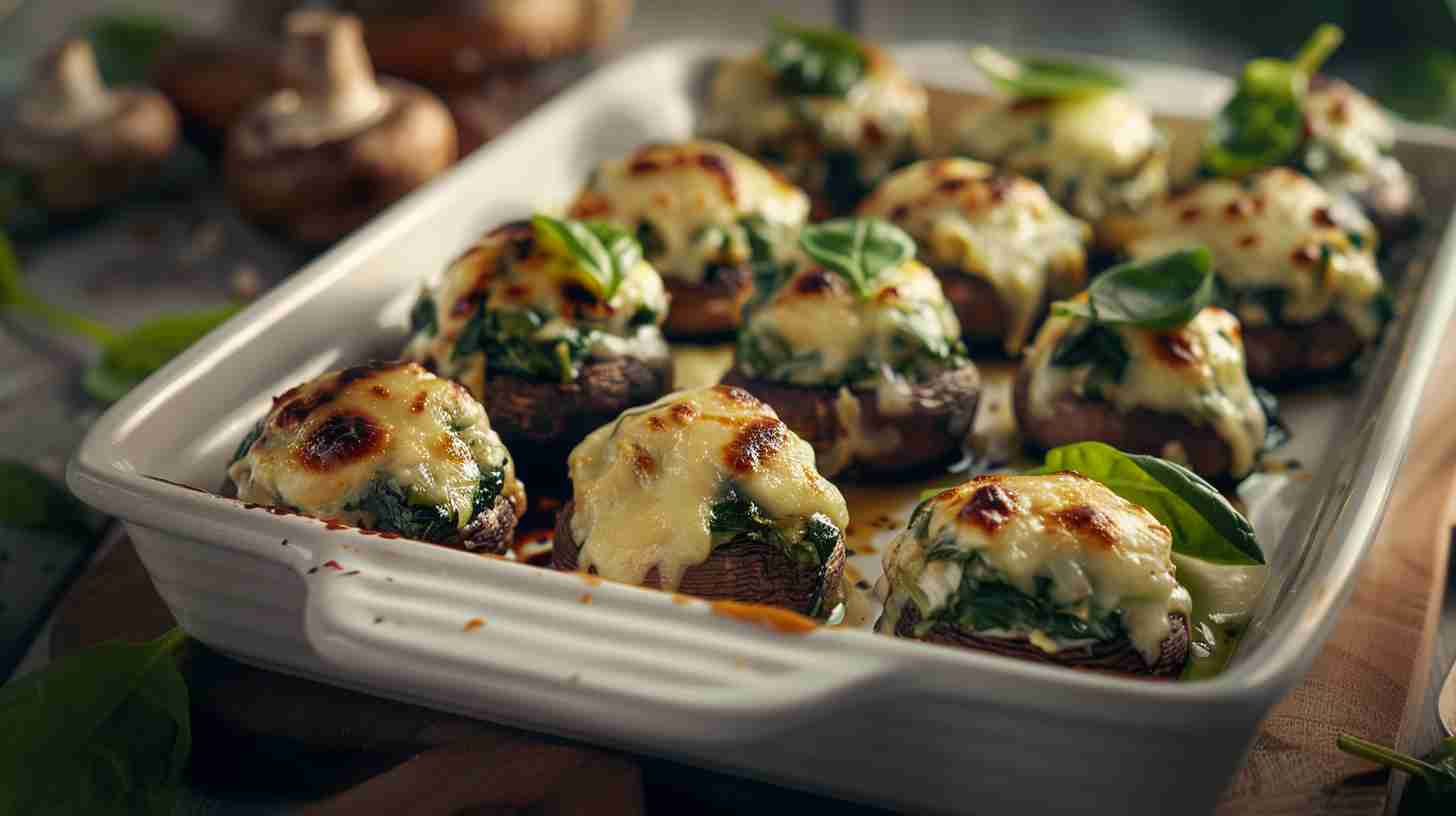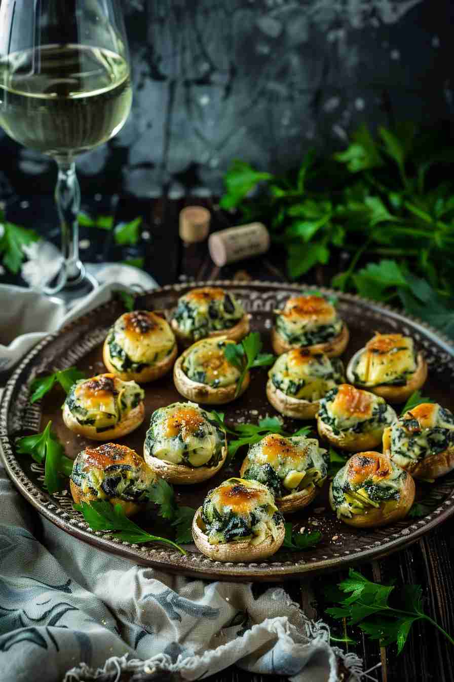 The legendary spinach-artichoke dip transformed into juicy stuffed mushrooms with four cheeses and golden, bubbly tops – pure party perfection!