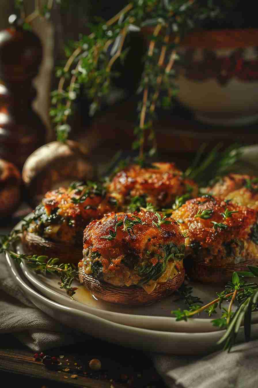 Only ~3–4g net carbs per mushroom! Can be fully assembled (through step 9) 48 hours ahead — cover tightly and refrigerate. Flavor gets even better overnight. The filling alone makes killer stuffed chicken breasts or pasta sauce.